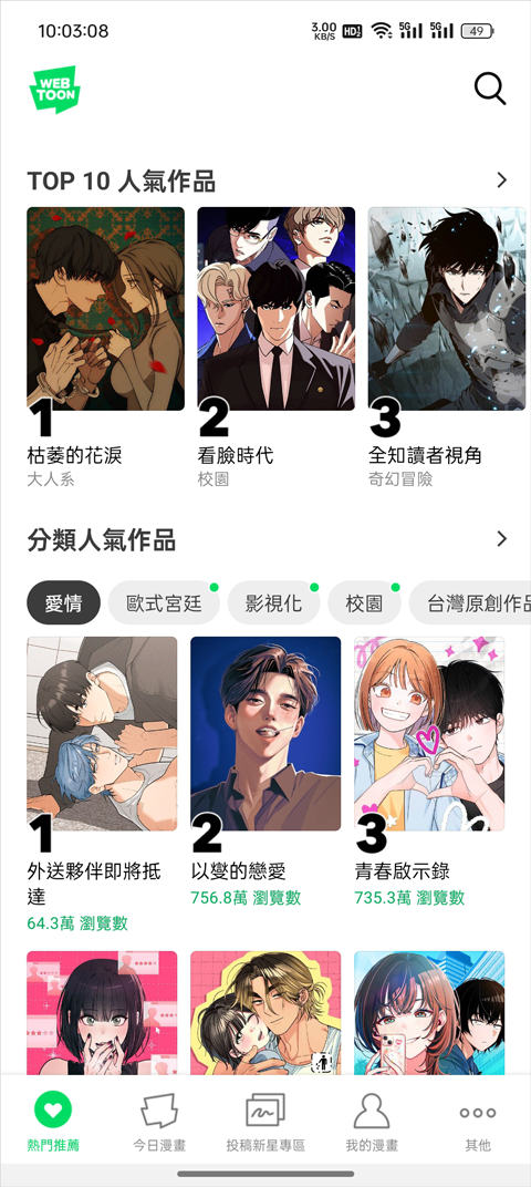 Webtoon韩漫app 是一个专注于观看韩国漫画的平台。这款软件功能强大,为用户提供了大量的漫画资源,每天不断更新,并支持离线阅读、社交媒体、信息分享和其他功能。你可以在手机上尽情观看动画。这里有大量的动画类型,无论是都市还是动作,你还可以直接输入关键词进行搜索。你可以收集你最喜欢的漫画,这样你就不会错过最新的精彩情节。