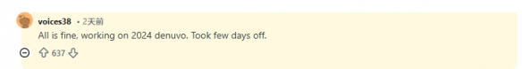 然而此次事件最终被证实是虚惊一场:voices38已重新出现在网络中,并明确表示自己安然无恙——只是需要短暂休整。目前该黑客正致力于破解2024年版的Denuvo加密技术,但尚未公布下一次破解的具体时间节点及目标游戏。