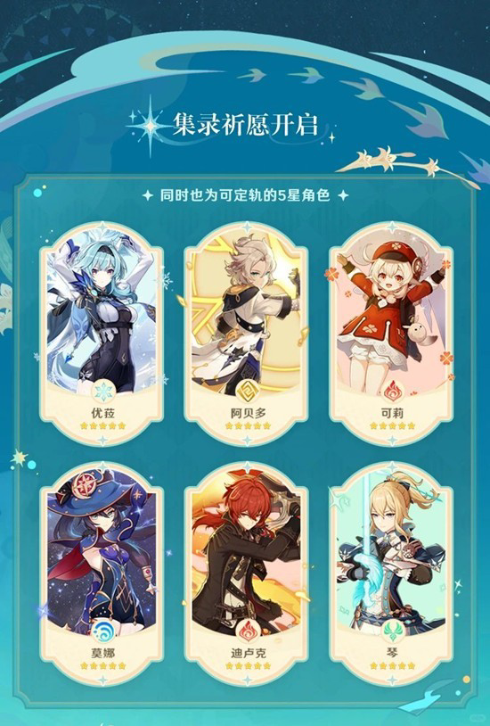 原神6.4全新版本混池角色抽取建议,含优菈、阿贝多、可莉、莫娜、迪卢克、琴六大五星。经典复刻,可以来更好的去体验。