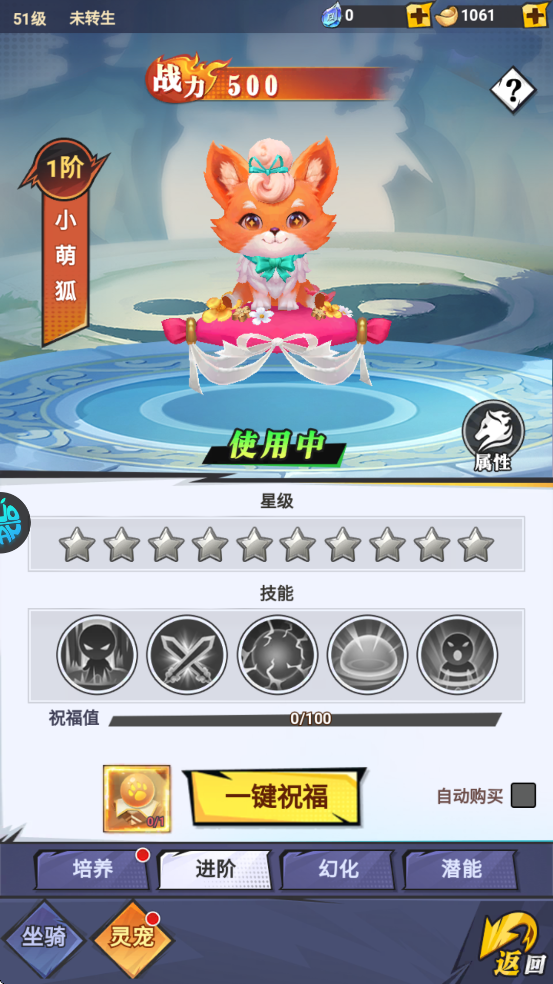 1、可使用灵宠进阶丹提升进阶祝福值。