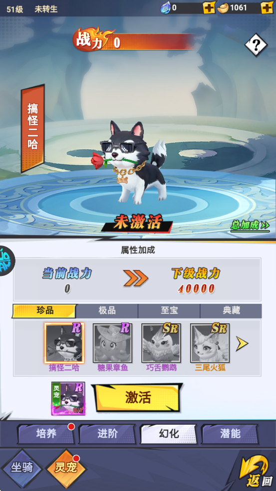 2、解锁生命角色,专精武功,使用经验丹升级坐骑/灵宠,激活专属技能和外貌。