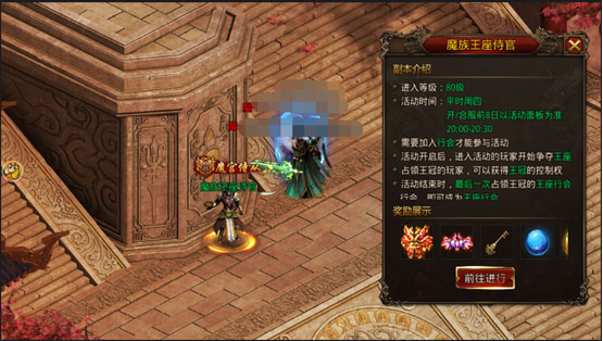 阵营都需要领头羊,王座争霸就是选出这个领头羊,阵营地都有一个NPC,活动期间只有同一个阵营的才可以进去,进入以后夺得王冠在规定时间内没把抢走那么你就是这个阵营的王者。PS:获得王冠的人可以随时开启一个小时的双倍任务时间。