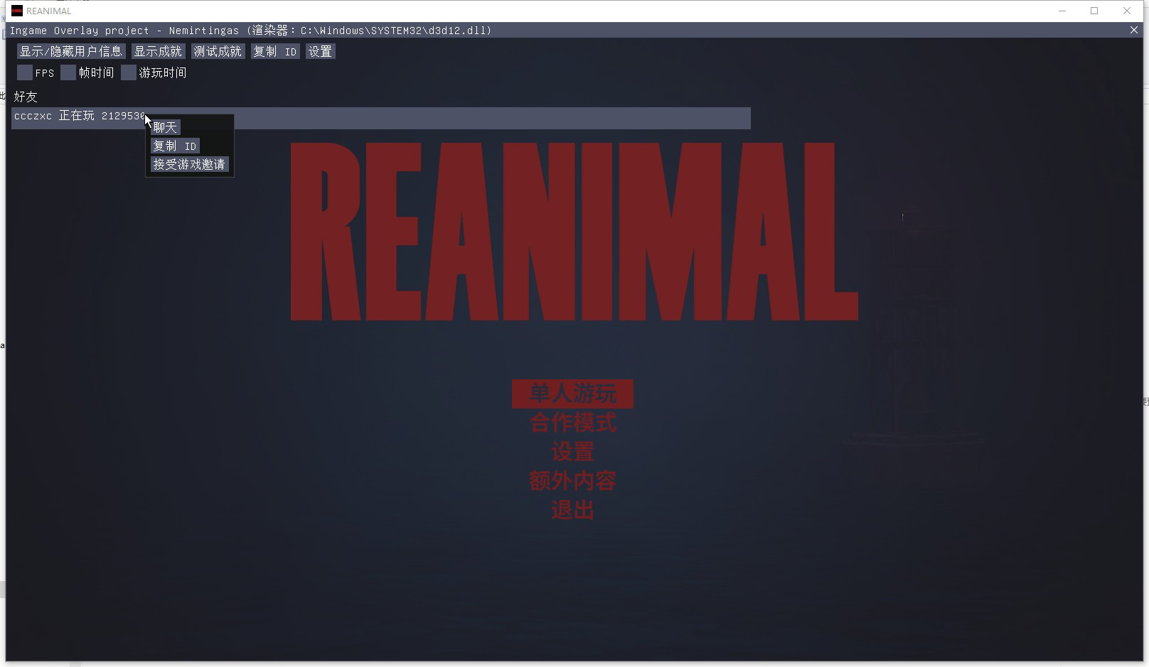 2). 平台载入: \Everholm\Binaries\Win64\REANIMAL.exe, 启动。