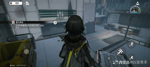 在进入激光房后一人物正面朝向为北,跑酷房门在最东北边,完成跑酷后即可获得