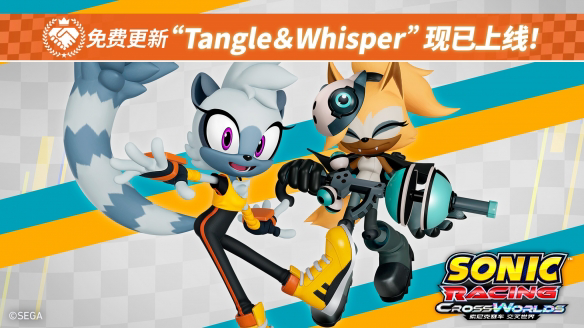 世嘉好评热销中的赛车游戏《索尼克赛车 交叉世界》于今日(2月26日)发布了免费更新“谭格尔 & 薇丝帕”。谭格尔和薇丝帕是IDW系列漫画《刺猬索尼克》中的登场角色,谭格尔是一只乐观开朗的狐猴,薇丝帕是一匹沉默寡言的狼,她们都是索尼克可靠的伙伴。