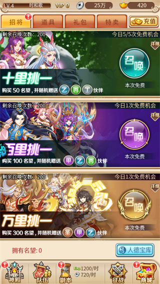 3、十里挑一每天5次免费的机会不要浪费了,到了后期体力很宝贵,不可能回头去刷低级伙伴,一些高级伙伴合成需要的低级伙伴就靠十里挑一了。