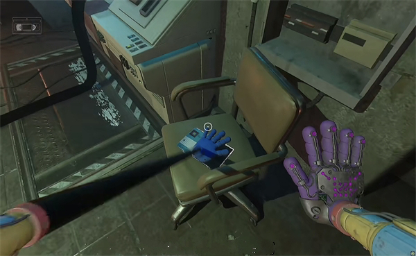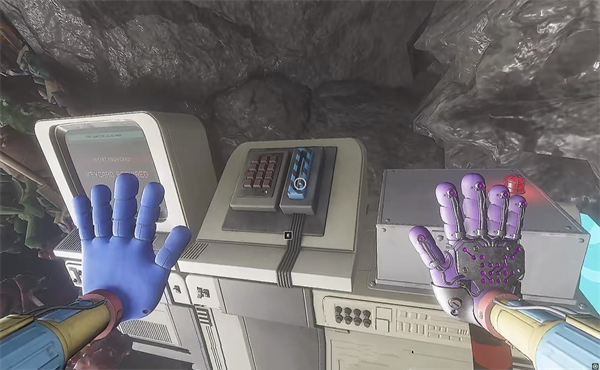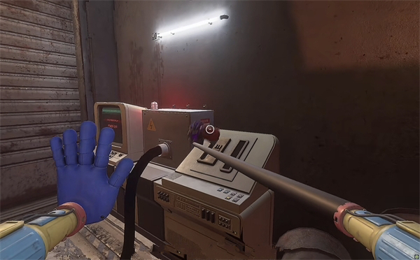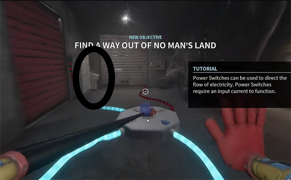 6、开门之后走里面还会有一个开关给他拉下来,往前走进去用蓝色手臂互动一下前面的开关,这里要触发三个开关才能有电流打通出口。