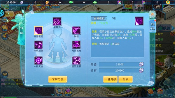 门派技能的升级将显著增强技能的实际效果,部分技能在等级提升后,还会增加可作用的目标数量,从而在战斗中发挥更大作用。