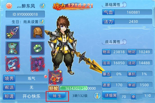 1、转生入口:点击游戏界面右上角的【人物】图标即可进入。