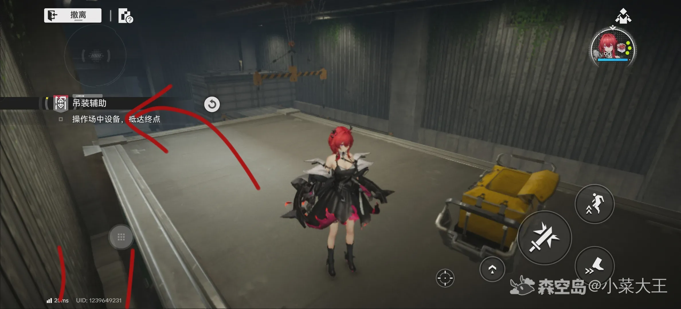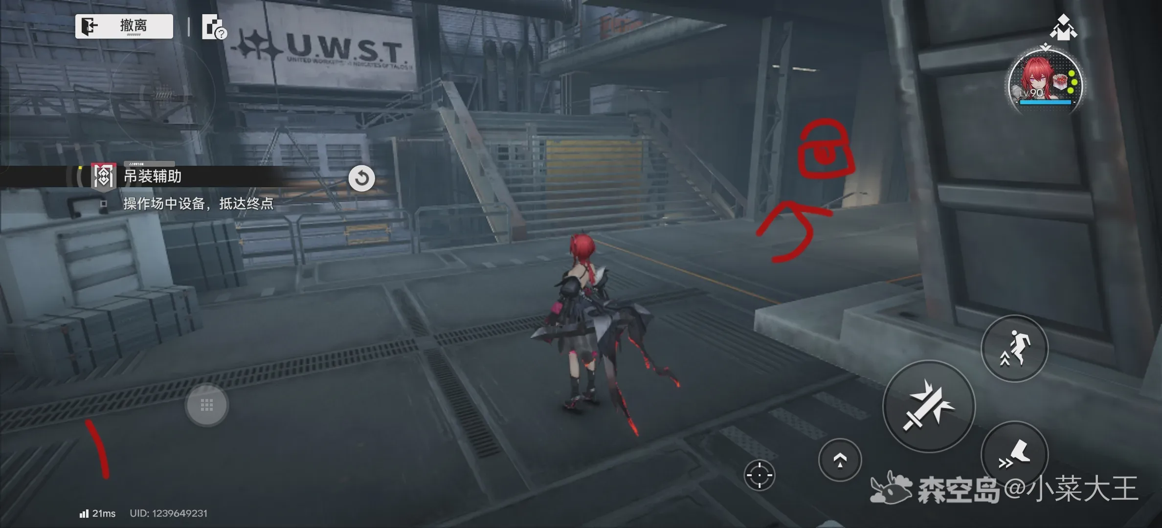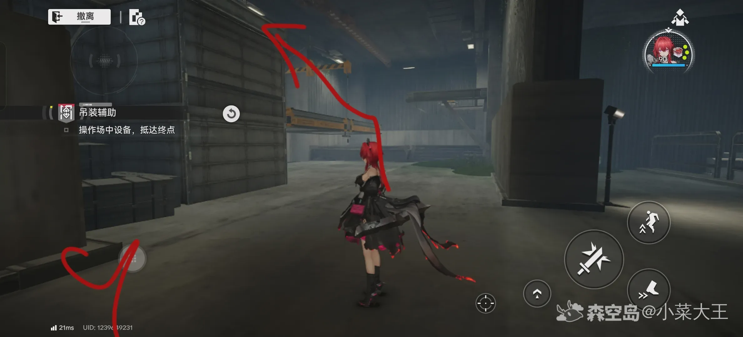 6.上去以后来到小房间,按照图里指向走,来到左上方开启下面铁门,并看见对面的第三个宝箱