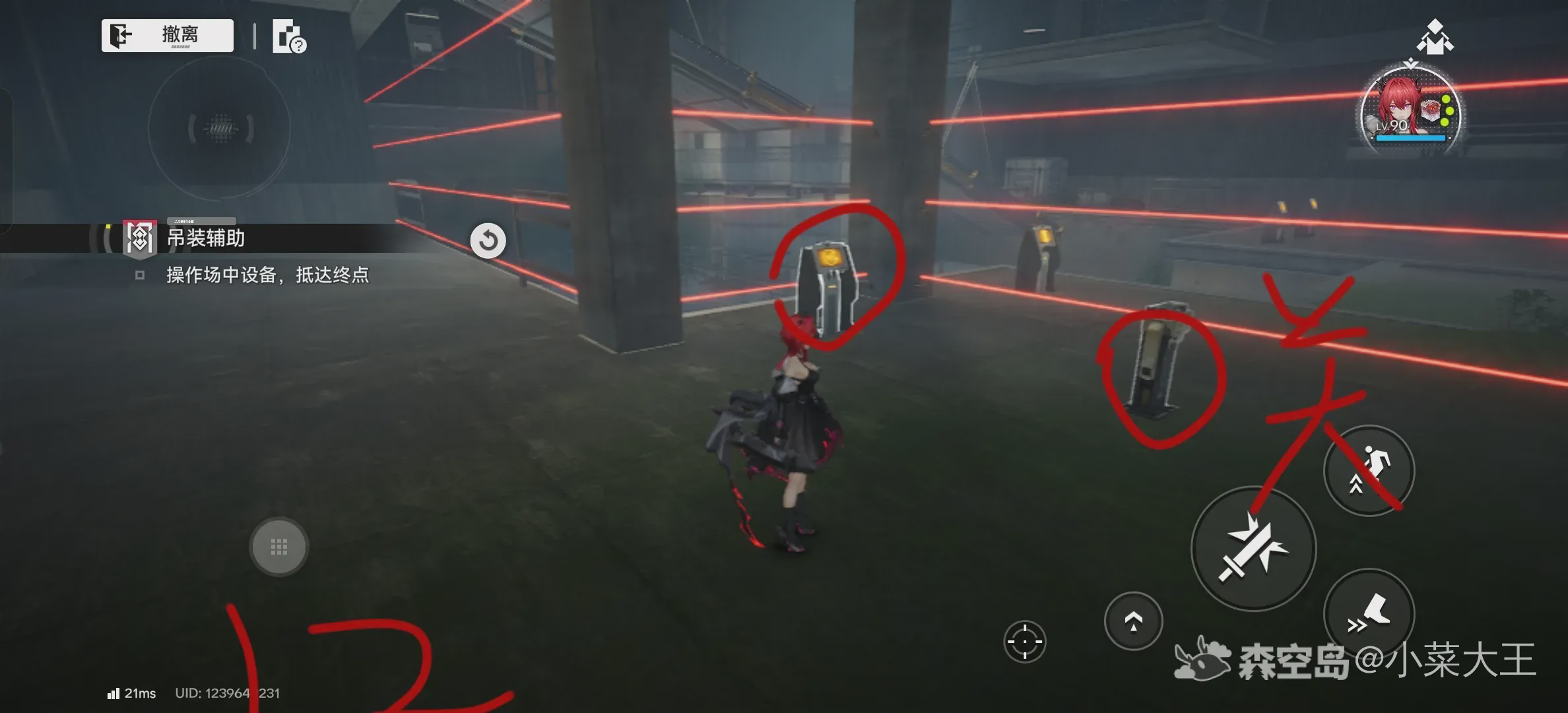 8.铁门内跳下去进激光网内,把前方激光开关关掉