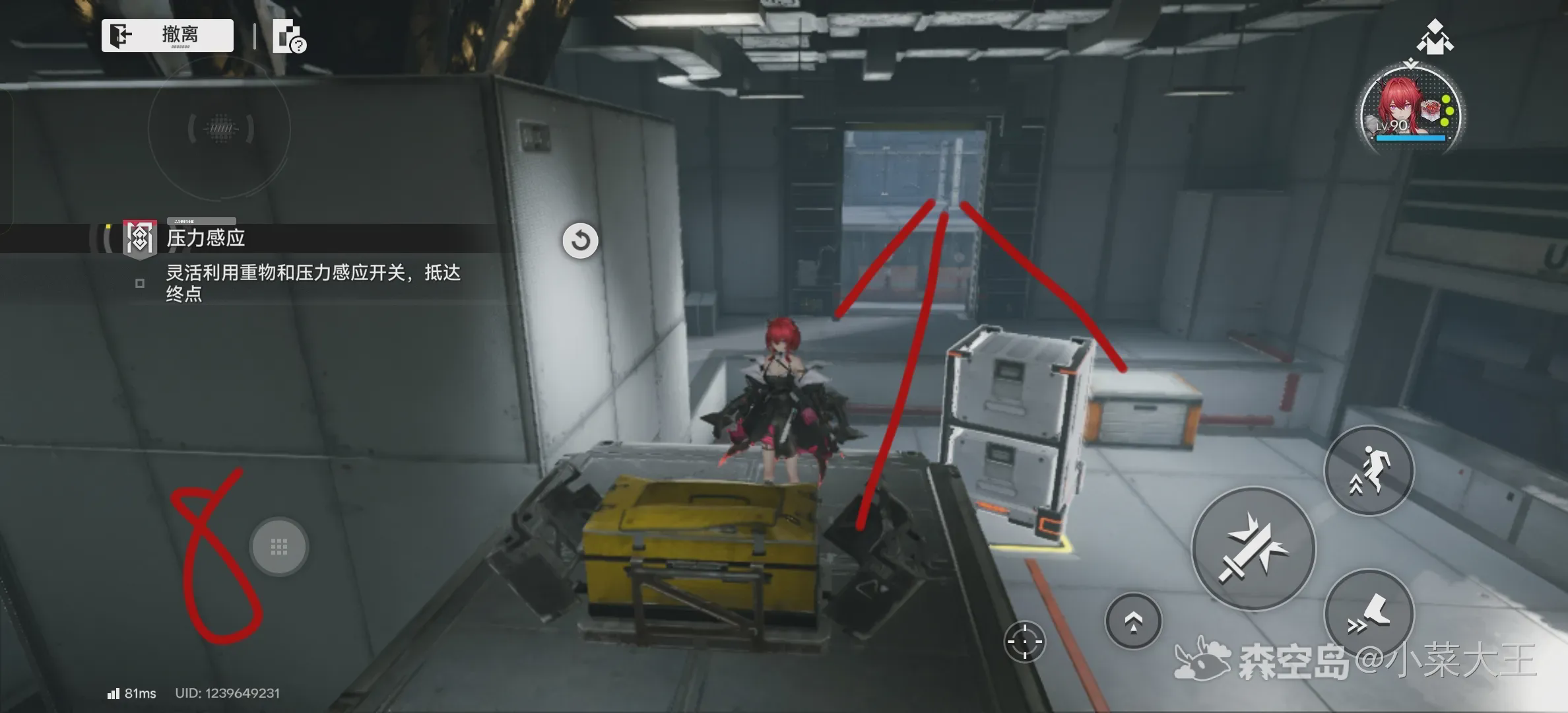 3.把室内长箱子拖到压力板上兵踩着上第一个宝箱位置