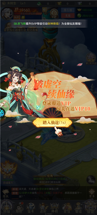 1、首次登录即送VIP,完成闯关直送VIP10。