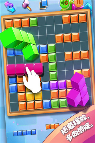 1、独特的方块消除游戏玩法,结合精致图像的设计,增加了游戏的乐趣和挑战性。