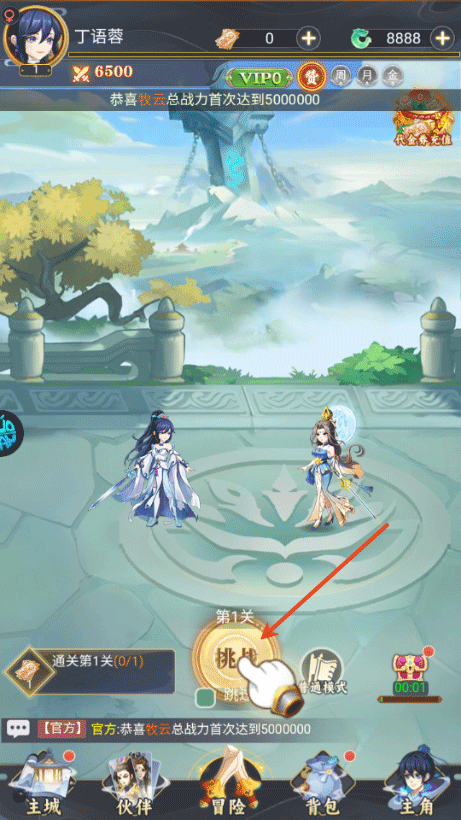 3、进入游戏后,点击挑战;