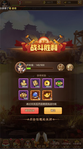 5、利用通关获得的资源,可以进一步提升武将等级,增强队伍整体实力。