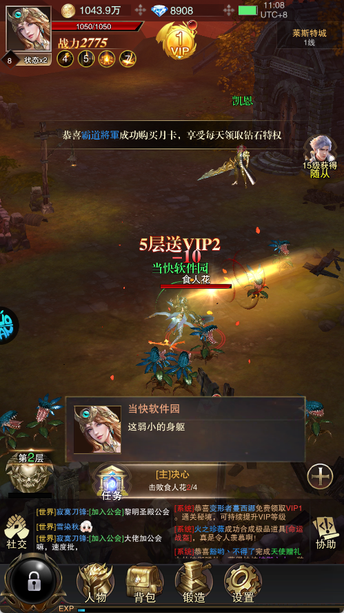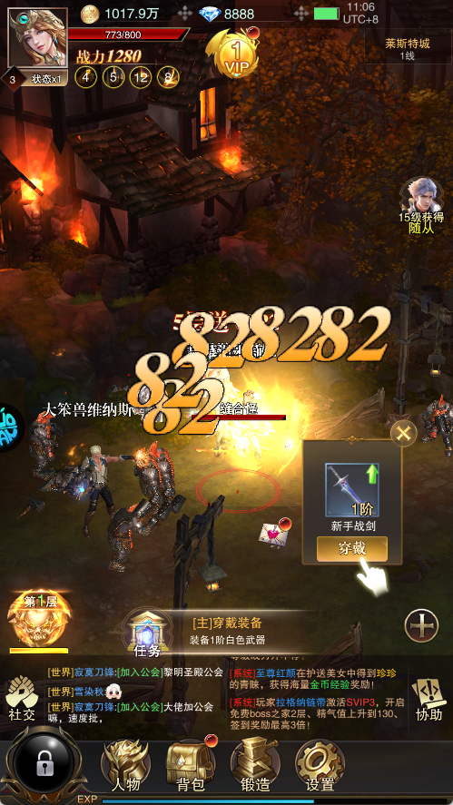 强化装备:通过收集材料对装备进行强化,提升装备属性,从而提高角色战力。战力提升后,玩家在挑战副本、击杀怪物时会更加轻松,能够更快地获取经验。